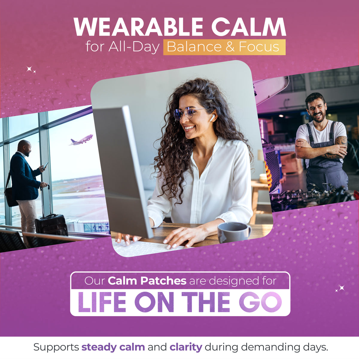The Calm Patch is designed to support a calm, balanced state — without feeling sedated. It helps with stress relief, nervous system support, and calm focus that’s work-safe and day/night friendly.